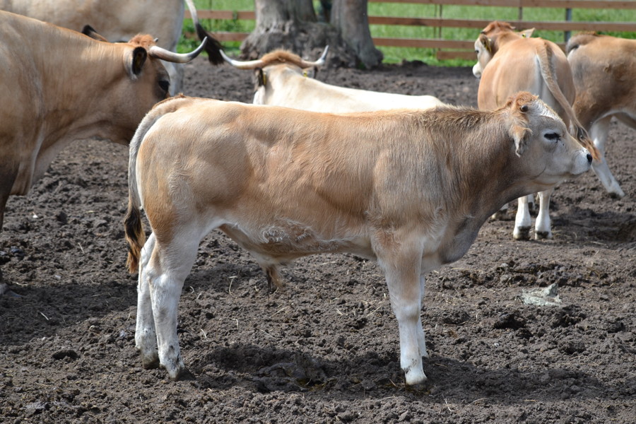 Zur Zeit haben wir einen Bullen von Francous, V. Roussel, MV. Tayssou im Einsatz. Sehr rahmige Kälber mit interessanter Farbe, vorne überzeugend, fehlt hinten noch etwas Keule, wenn die Mutter nicht viel beitragen konnte. Allerdings ist der Bulle auch etwas langsamer in der Entwicklung, was der Langlebigkeit dienlich sein dürfte.